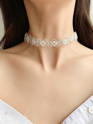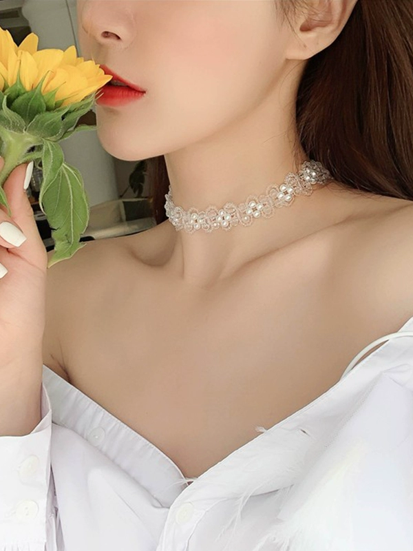 A珍珠项链+蕾丝带