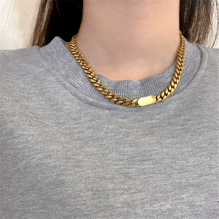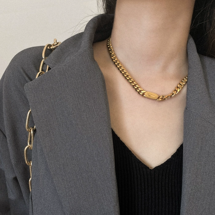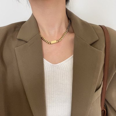 欧美嘻哈风格街头重工粗链钛钢项链夸张金色锁骨链个性百搭颈链女