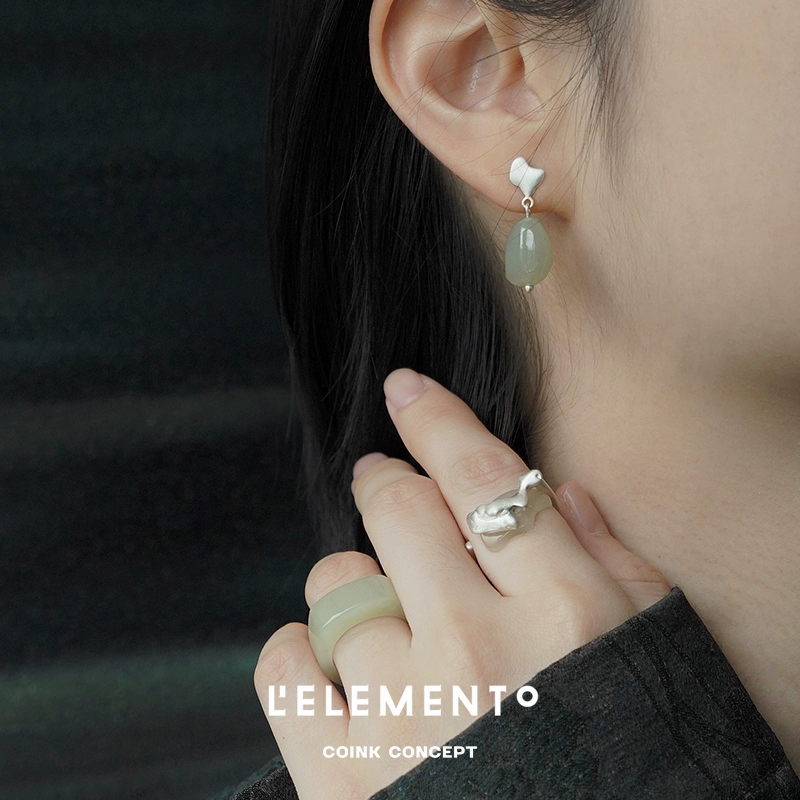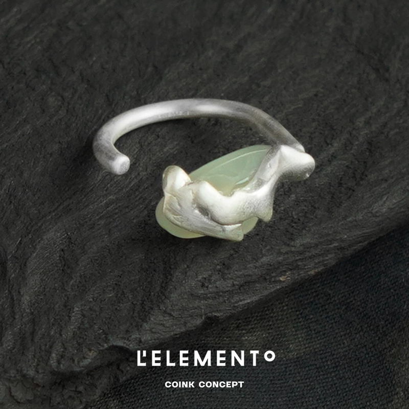 - 颜色分类: 银波碧晖和田青白玉戒指