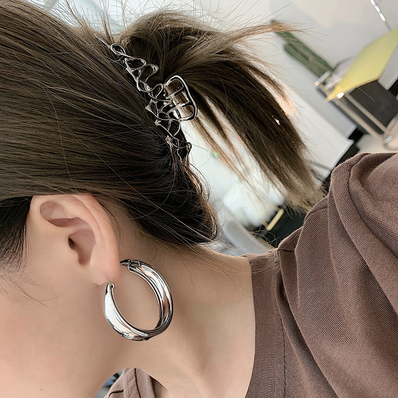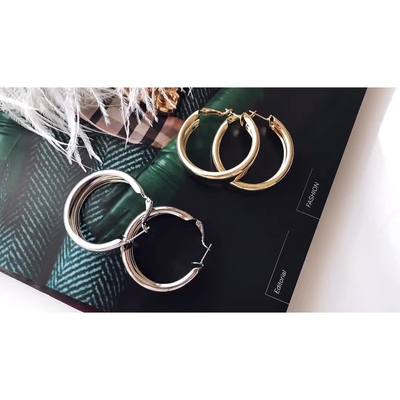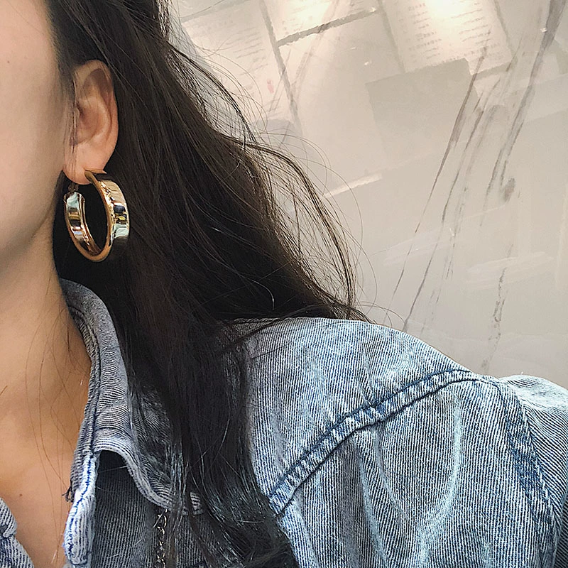 朱小姐同款欧美个性夸张金属质感宽边圆圈耳环简约百搭圈圈耳圈女