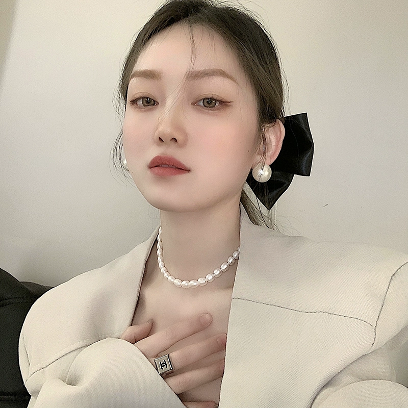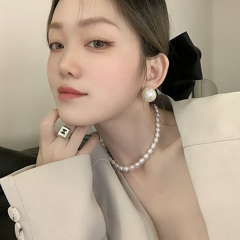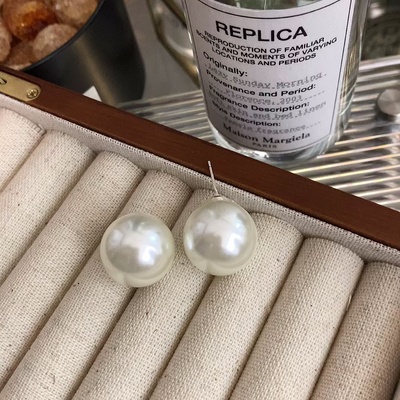 新款mona同款大珍珠耳环夸张时尚气质耳钉法式复古百搭耳饰银针女