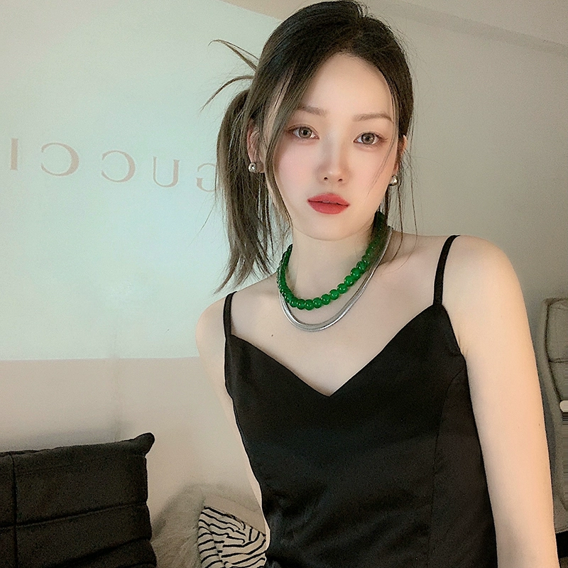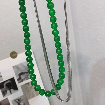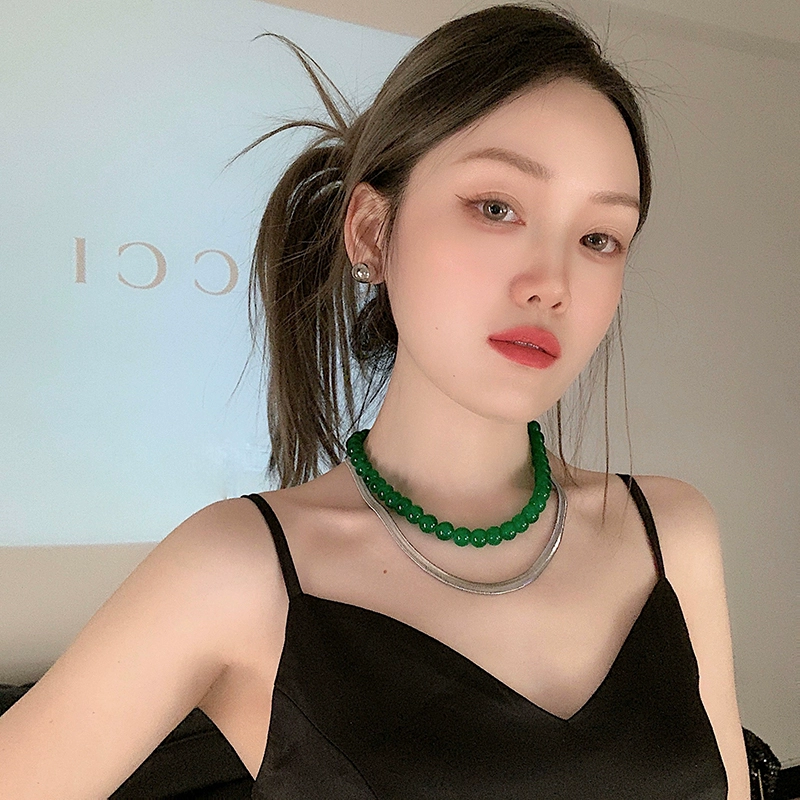 新款ins博主夸张绿色玻璃珠项链女欧美小众时尚气质锁骨链颈链潮