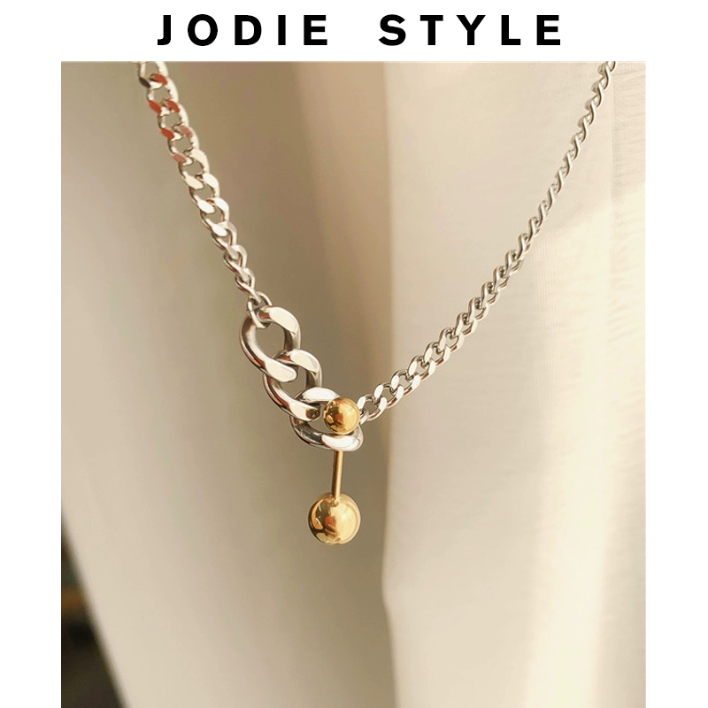 14K金欧美街头复古钛钢简约重工平衡球小众设计链条项链女锁骨链